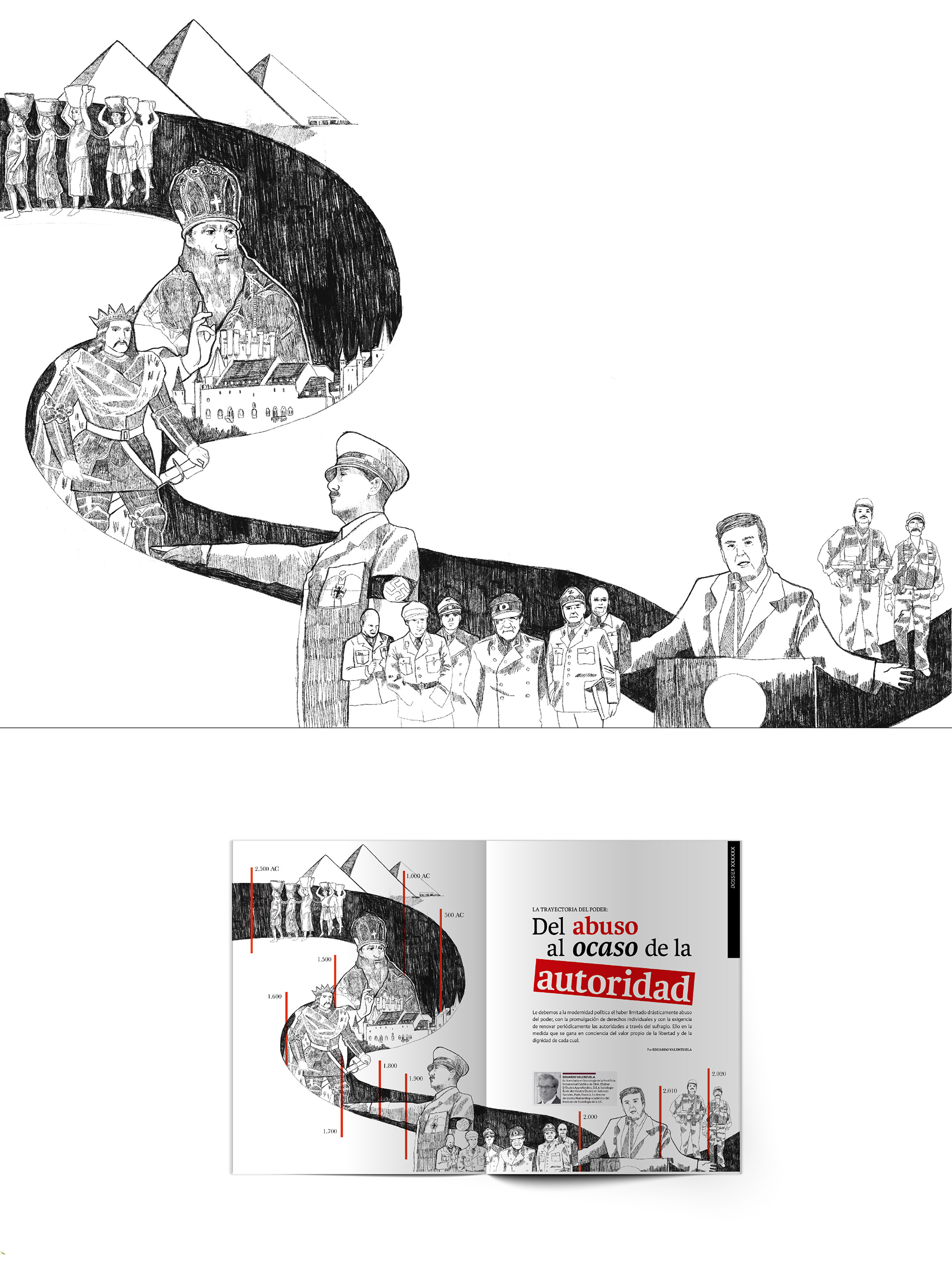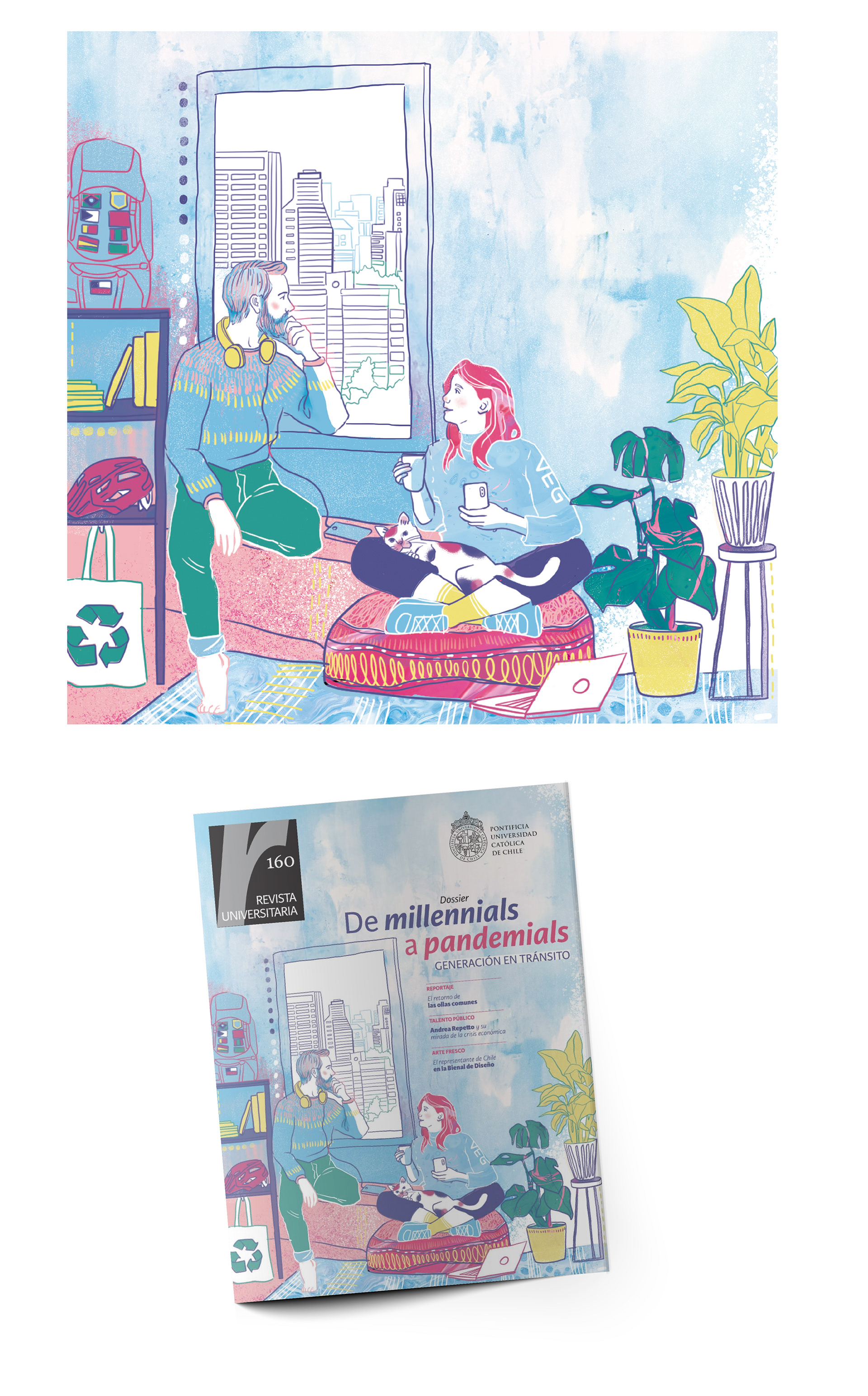 Ilustraciones realizadas en la oficina de Diseño Corporativo de la VicerrectorÍa de Comunicaciones de la Pontificia Universidad Católica de Chile, para Revista RU 167 (Revista Universitaria).